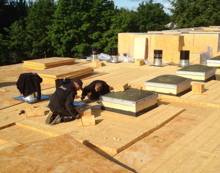 Alusteel Kværndrup På tagfladen har Ryslinge Tagdækning hjulpet med pålægning af APP tagmembranen Derbicolor, samt levering af ovenlys i Kvnærndrup.