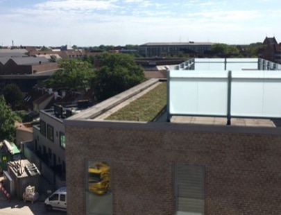 Fire boligblokke er blevet udført med tagpap på toppen samt på terrasser/altaner (belagt efterfølgende med flisebelægning). Øverst er tagdækning fuldendt med grønt tag (sedum) for at sikre god afvandning samt give et smukt og grønt udtryk.